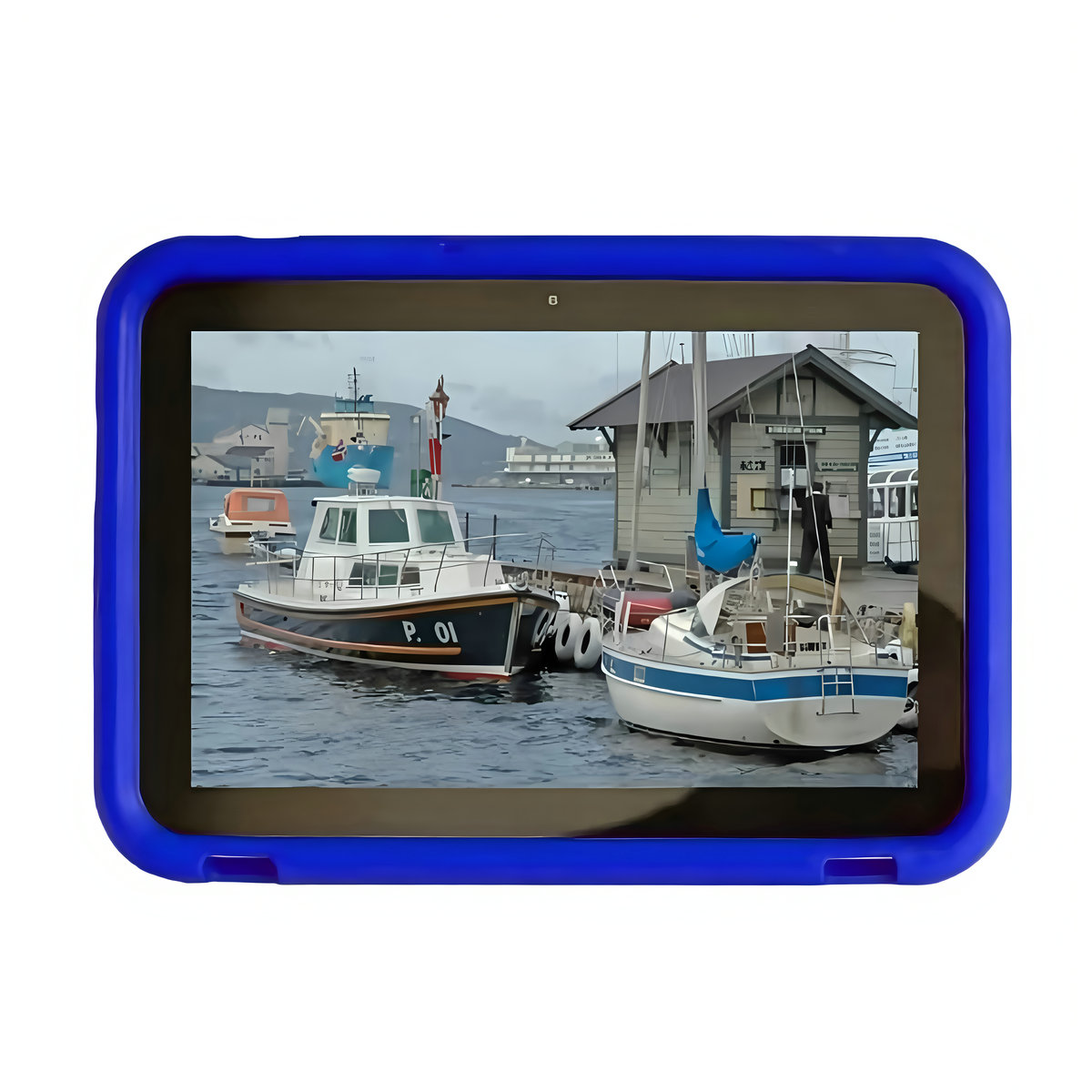 - Protective top bezel, rounded edges and corners, and speaker openings designed to direct the sound toward the tablet user.